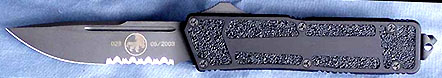 Named after the small intelligent carnivorous dinosaur, the Troodon (TROH-o-odon) (Greek meaning "wounding tooth") is Microtech's newest double action out-the-front and the flagship for their whole 2006 OTF line. This knife is a new era for Microtech Knives. New enhancements include a new slender handle, contoured shape and radical design elements, as well as a sophisticated internal mechanism, which improves operational functionality and reliability.