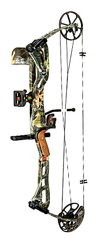 PSE® Mossy Oak® X Compound Bow The experts at PSE and Mossy Oak teamed up to build this extraordinary hunting bow. Designed for X-treme comfort, forgiveness, stability, light weight and ease of shooting. Straight riser; 9" limbs with Hypersplit pivoting limb pockets; smooth 80% let-off (65% infinitely adjustable let-off) NRG X Cam with revolutionary easy-change module for fast draw length adjustment; custom wood grip. Brace height: 7-1/2". Axle-to-axle length: 31-1/4". IBO Speed: 300308 fps. Weight: 4.25 lbs. Color: Mossy Oak® New Break-Up®. Right hand only. Shown with optional sights, quivers & arrowrests.