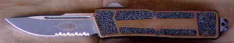 Named after the small intelligent carnivorous dinosaur, the Troodon (TROH-o-odon) (Greek meaning "wounding tooth") is Microtech's newest double action out-the-front and the flagship for their whole 2006 OTF line. This knife is a new era for Microtech Knives. New enhancements include a new slender handle, contoured shape and radical design elements, as well as a sophisticated internal mechanism, which improves operational functionality and reliability.